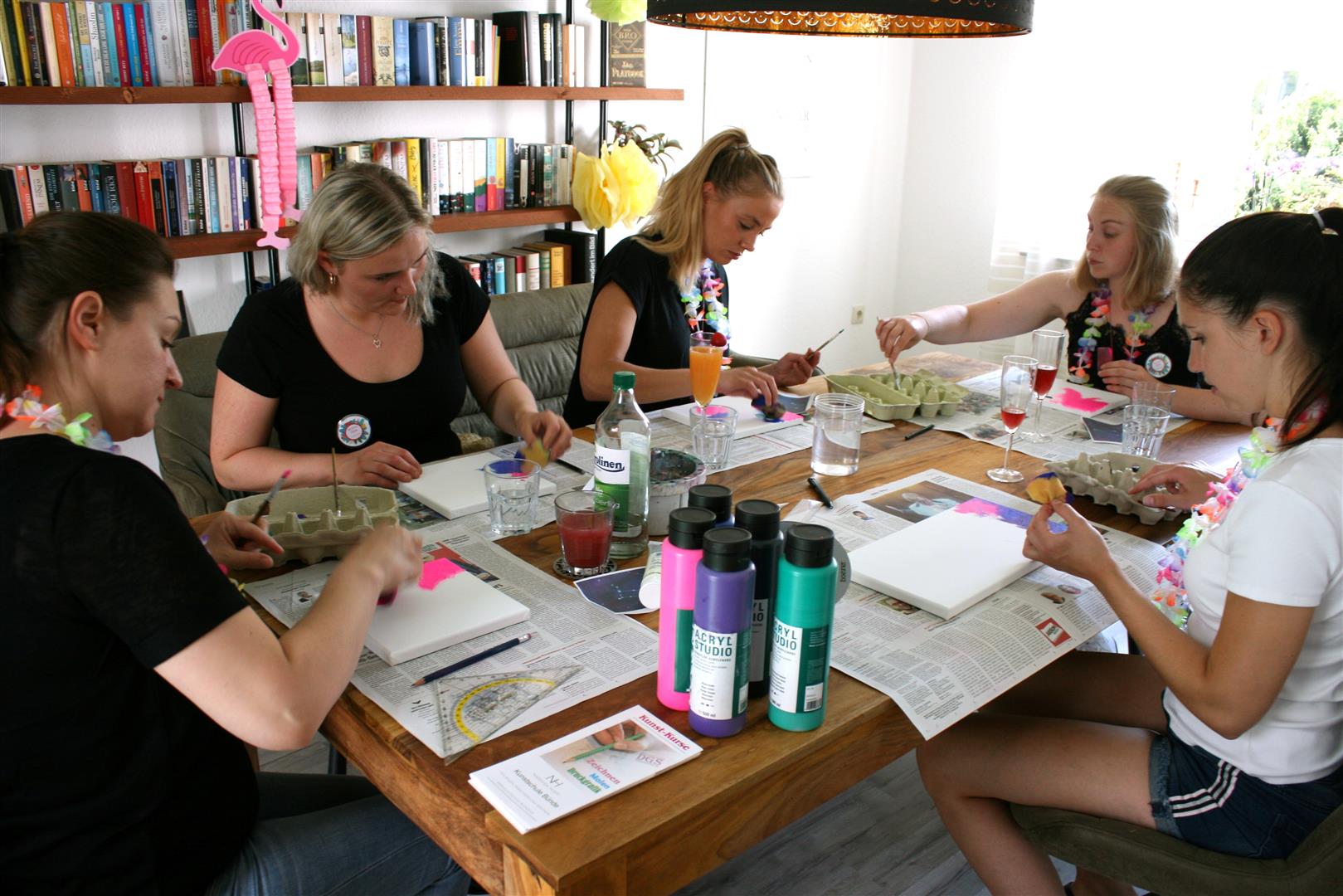 In einer gemütlichen Atmosphäre könnt Ihr einen entspannten JGA verbringen und dabei kreativ sein. Ob Acryl Malen auf Leinwand, oder XXL Papierblumen gestalten… Jeder verlässt den Workshops mit einem tollen Ergebnis, dass noch lange in Erinnerung bleibt.